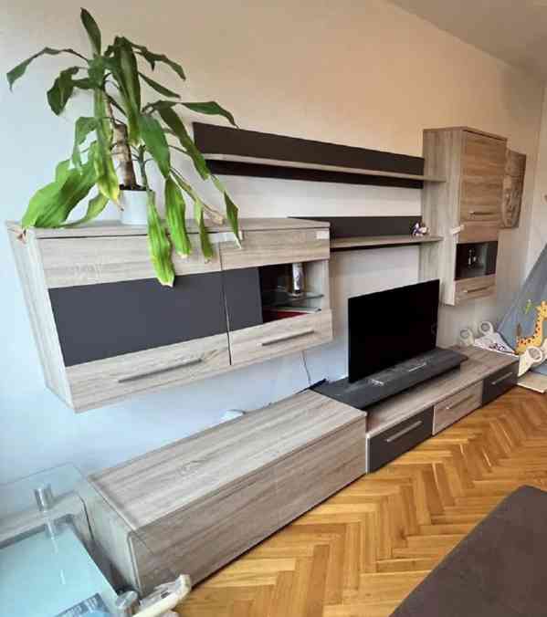 Obývací stěna včetně konferenčního stolku. Délka stěny: 120 cm + 180 cm. Stolek délka: 100 cm, šířka 59,5 cm . Případně je možnost i jídelního stolu a 4x židle. Pro více informací, rozměrů, fotek atd. pište prosím do e-mailu. Cena 4.000 Kč.