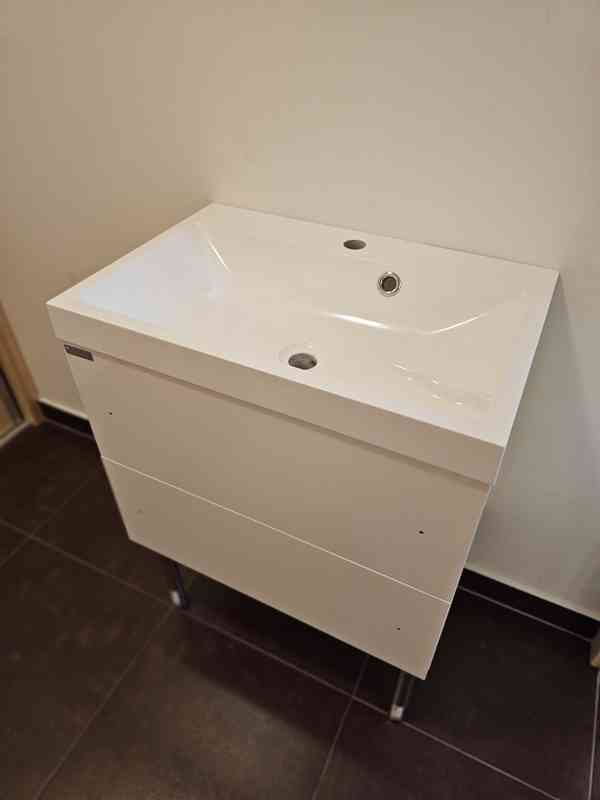 -Závěsná skříňka do koupelny s umyvadlem z litého mramoru 60x40 cm bílý lesk.