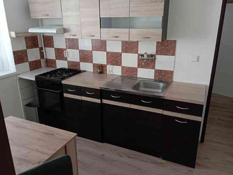 Byt 1+1 je částečně vybaven (kuchyň, pračka, lednice. Možnost dovybavení nábytkem).Byt leží v 1. patře a disponuje prostornou zahradou a sklepní kojí.