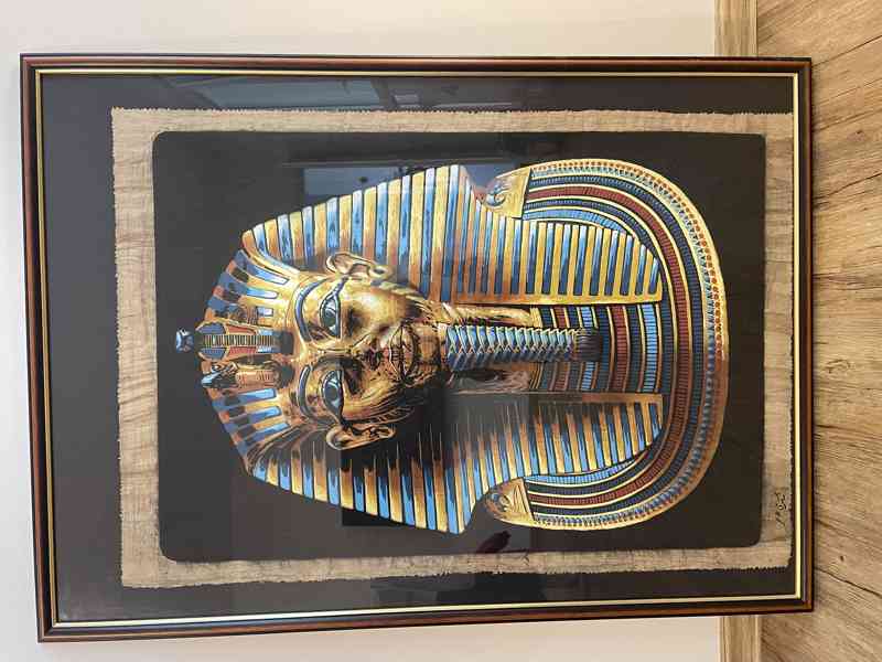 Prodám krásnou a velmi dekorativní ruční malbu faraona Tutanchamona na pravém egyptském papyru. Obraz je originál podepsaný přímo v Egyptě, kde byl také zakoupen.