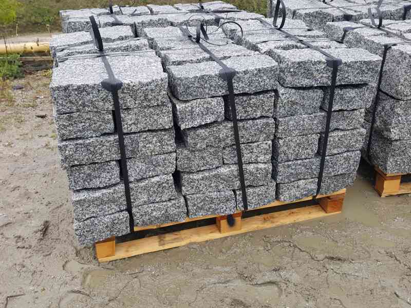 nabízím k prodeji žulové štípané krajníky 10x20x40cm (případně i libovolné jiné rozměry na přání) v šedé, šedohnědé a šedožluté barvě. Krajníky lze použít zejména k realizaci okrajů chodníků a ohraničení nebo zpevnění pojezdových ploch, ale taktéž i k realizaci zídek. Ke krajníkům Vám zajistím i dopravu, kterou Vám zkalkuluji na základě množství odebraného materiálu a místa vykládky. Krajníky jsou loženy na paletách, přeprava by byla zajištěna na plachtovém kamionu o maximální nosnosti 24 tun. Minimální odběr je 1 paleta (tj. cca 28-30 mb).