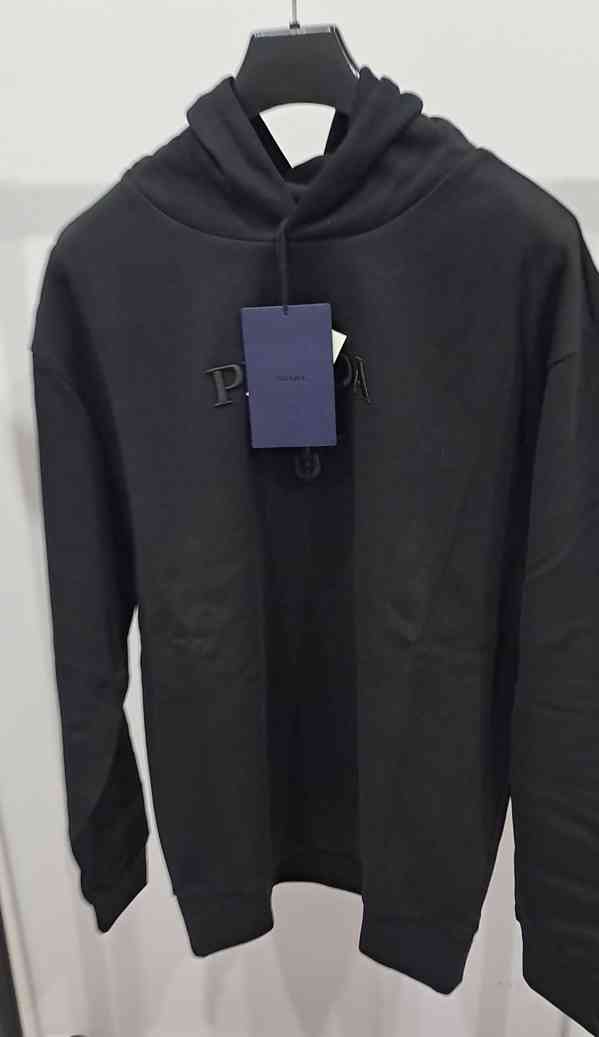 prodam panskou mikinu s kapuci zn.PRADA, uplne novu s vysačkama, nejnovši model , model :Prada Embossed Logo Hoody Black, černej farby s logem, 70% bavlna, ,30% polyamide, velikost L, rozmer vid foto, delka, širka medzi pazuchy a delka rukavu, cena 3400 kč + doprava zdarma