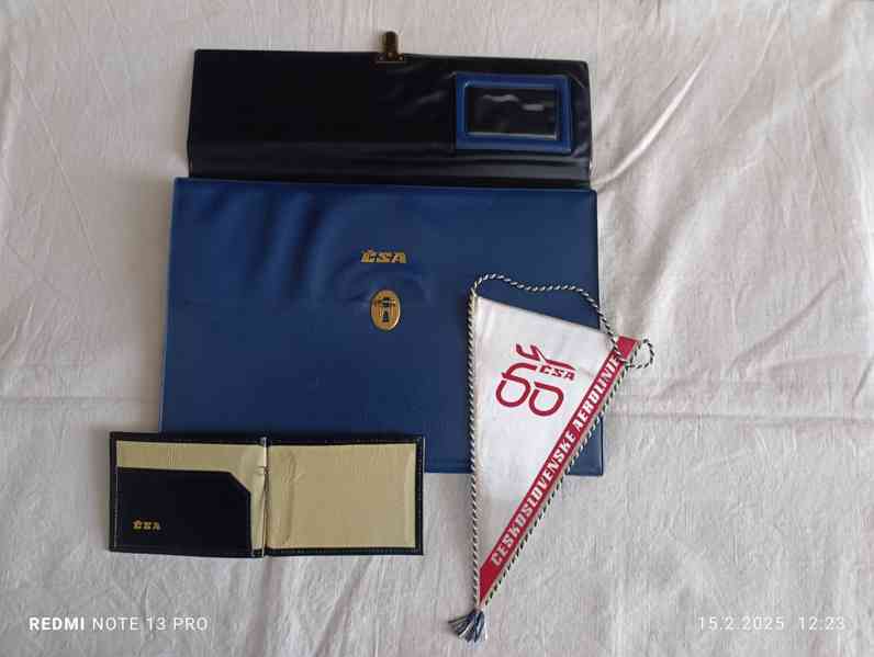 Prodám retro předměty - vzpomínku na dnes již neexistující firmu ČSA. Plastová aktovka s vnitřními odděleními, absolutně nová - 300,- Kč (PRODÁNO), kožená peněženka s klipsem na bankovky - 140,- Kč, stolní vlaječka s hliníkovým stojánkem vydaná k 60-tému výročí založení společnosti (komplet) - 350,- Kč. Osobní předání na Praze 3, nebo odeslání přes Zásilkovnu či Balíkovnu. Volejte 770 630 523, nebo pište na morgiana007@gmail.com