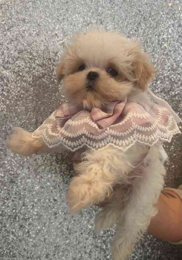 Moje malá Crackers má ten nejúžasnější vrh štěňat 🐶 Crackers je maltipoo, váží 2,1 kg, její otec je asijský pudl, plně testovaný na zdraví a její matka je korejský maltézák. Otcem je korejský maltézák Theodore, plně testovaný na zdraví a váží 2,2 kg! Tato štěňata budou v dospělosti extrémně malá, v současné době váží pouze 0,5 kg v 11 týdnech, což je na chov příliš malé!! Jsou také 🌸 hypoalergenní, nelínají a jsou velmi přítulná, ideální do rodin 🐾 Moje štěňata vyrůstala v rodinném domě s dalšími zvířaty a dětmi, jsou zvyklá na stříhání a výcvik v interiéru. Štěňata budou mít 🌺první očkování 🌹kontrolu na zdraví s certifikátem 🌸mikročipovaná 🌻štěněcí balíček