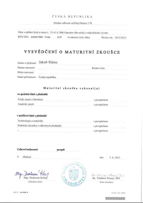 Mám řádně ukončené vzdělání v oboru (maturita v oboru Operátor nábytkářské a dřevařské výroby), splňuji tedy veškeré zákonné podmínky pro okamžité ustanovení garantem bez nutnosti dokládat další praxi.