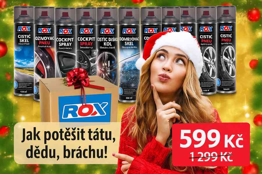 kompletní sada autokosmetiky ROXBOX, která obsahuje 10 kusů sprejů o objemu 600 ml. 1 Sprej tedy vyjde na pouhých 60kč a to nikde nekoupíte. Perfektní vánoční dárek pro všechny, kdo chce mít své auto v top stavu.