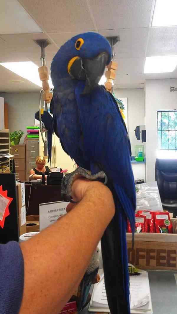 Rozkošní papoušci ara hyacintový k bezplatné adopci