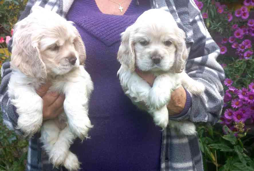 Nabízím poslední nádherné blond -světle krémové štěňátko amerického kokršpaněla, narozené 5.9.(10-ti týdenní) bez PP (někteří předkové s PP)-neodolatelného miloučkého mazlíka pejsánka po zrušené rezervaci. Předposlední foto je matka, poslední otec. Pejsek je zdravý, 2x! očkovaný kombinací s průkazem, čipovaný. Je odčervovaný, jí samostatně granulky Royal canin starter, je naučený základům čistoty. Štěňátka odchováváme s veškerou péčí a láskou. Při předávání bude ošetřen i proti vnějším parazitům, ostříhané drápky.