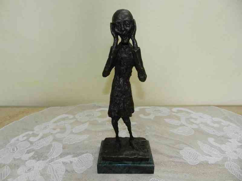 Zajímavá bronzová Plastika, Výkřik, Edvard Munch, mramorový podstavec, Signováno, velmi kvalitní zpracování, pozdější odlitek.