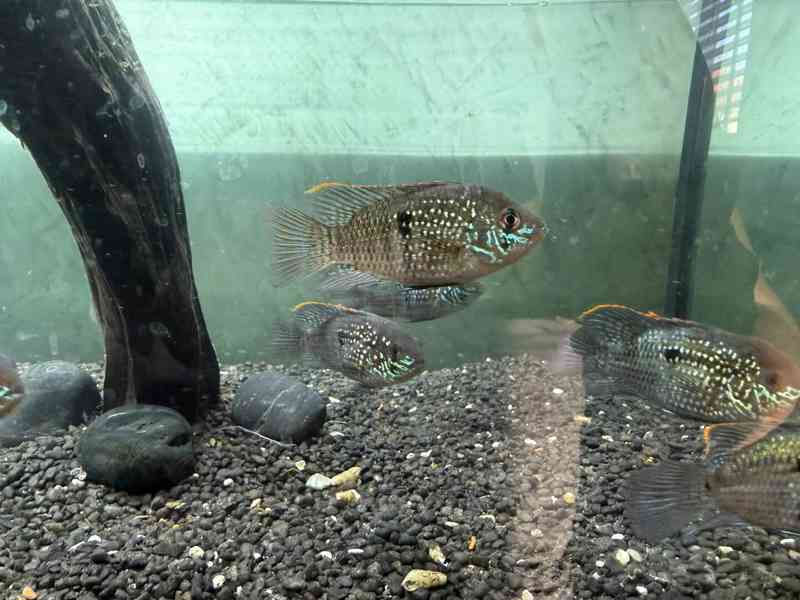 Prodám odchov Akary modré velikost ryb cca 7+ cm. Cena za ks 30 Kč.