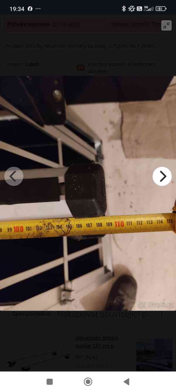 Prodám příčníky Neumann rozměry viz fotky, uchycení do T profilu.