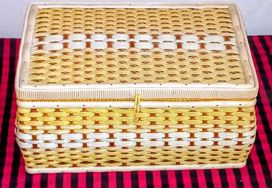 Prodám retro kazetu na šicí potřeby32 x 21 cm, výška 16 cm.