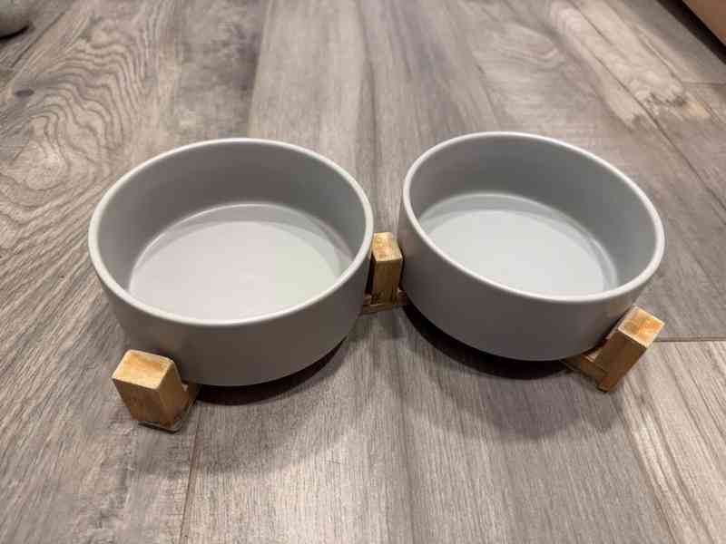 prodám v perfektním stavu dvě misky pro pejska na granule, vodu, případně co uznáte za vhodné včetně dřevěného držáku. V případě potřeby více informací se na mě neváhejte obrátit.
