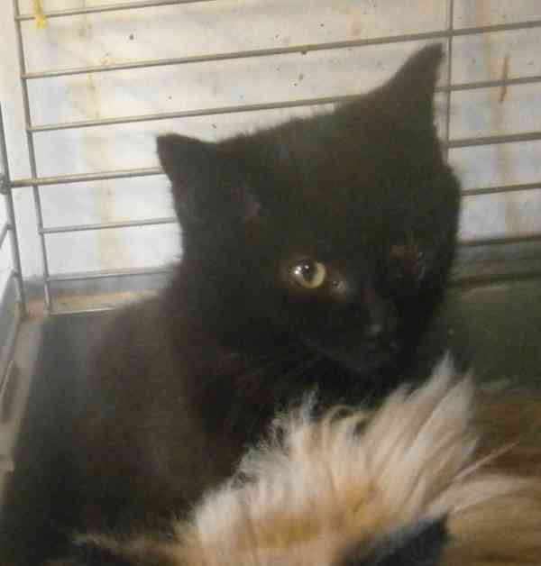 Černý hodný medvídek 3měsíční Míša hledá domov. Zatím je vykulený, je pár dnů v útulku. Byl nalezený v zahrádkách, je už odčervený a očkovaný. Mohl by jít oba společně do nového domova, nebo do čilé, přátelské kočičí společnosti. Nebo do rodiny, kde budou mít čas a chuť se koťátku věnovat. Je malé koťátko, zvykne si na mazlení a péči. Zatím určitě okouká hraní a kočkování od koťátek v útulku. Můžete ho mít za příspěvek na péči.