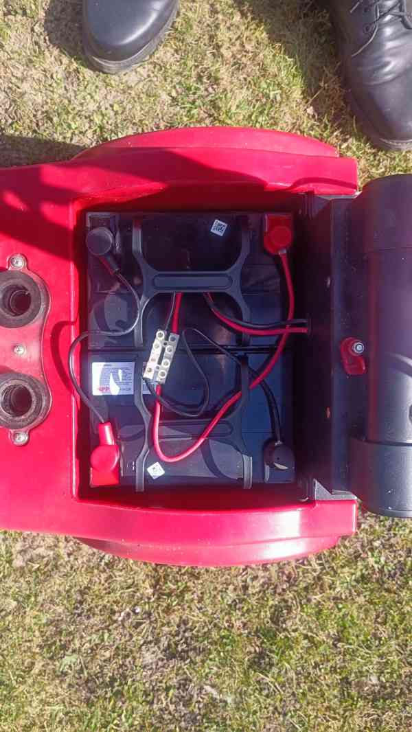 Pochozí podlahový mycí stroj krátce používaný po celkovém servisu s novými akumulátory. Vhodné k úklidu prostor jako jsou např. restaurace, obchody, chodby atp.