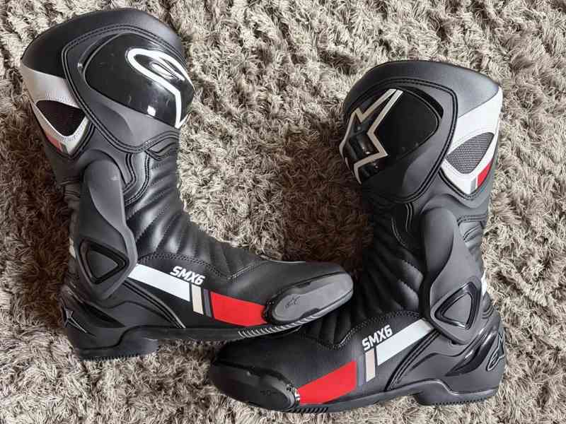 Silniční boty od značky Alpinestars model SMX-6 V2 ve velikosti – 44 vhodné i na nohu o číslo menší. Jsou nové pouze 1× odzkoušené, samozřejmě ve výborném stavu. Nabízí vylepšenou, pružnější obšívku a tvar pro větší pohodlí.