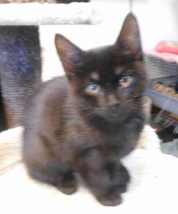 Hravý, akční černý 2,5-3měsíční Čertíček hledá domov, stejně jako jeho černá sestřička Čertinka. Oba jsou zvyklí na společné hry, kočkování. Práce s míčkem, s myškou za 1. Hrají si, dovádějí a pak společně usnou. Jsou ještě malá koťátka, mohou jít do nového domova spolu, nebo každý nejraději ke koťátku, do čilé kočičí společnosti. Nebo do rodiny, kde budou mít čas se koťátku věnovat. Pro hru a aby nebylo malé kotě dlouho samo doma. Čertíček je o něco živější než jeho sestřička. Jsou očkovaní, odčervení a můžete každého mít za příspěvek na péči.
