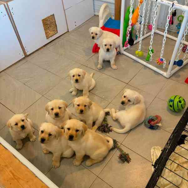 Naše štěňata labradorského retrívra jsou ztělesněním roztomilosti a okouzlujícího! Díky své měkké srsti, jiskřivému oku a hravé povahě jsou připravena vnést radost do každého domova. Labradoři jsou známí svou inteligencí, loajalitou a láskyplnou povahou, což z nich dělá jedny z nejlepších rodinných společníků. Tato štěňata, vychovaná s láskou a péčí, jsou zdravá, socializovaná a dychtí po setkání se svými stálými rodinami.