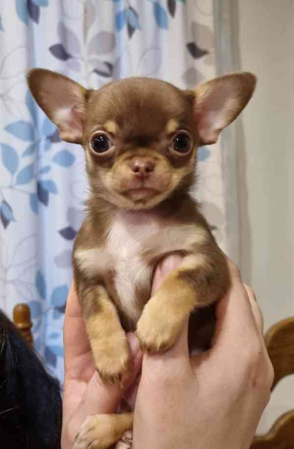 Exkluzivní mini štěňátka čivav, 11 týdnů stará, krátkosrstá i dlouhosrstá. Exkluzivní mini čivavy hledají nové domovy. Štěňátka jsou stará 11 týdnů, krátkosrstá i dlouhosrstá, odčervená, čipovaná, očkovaná (evropský pas pro domácí mazlíčky), veterinářsky prohlédnutá, velmi dobře socializovaná a samozřejmě vycvičená na bydlení (a na vrhu). Jsou odchována v našem lese. Rodiče jsou k vidění. V případě zájmu nás prosím kontaktujte e-mailem nebo přímo přes