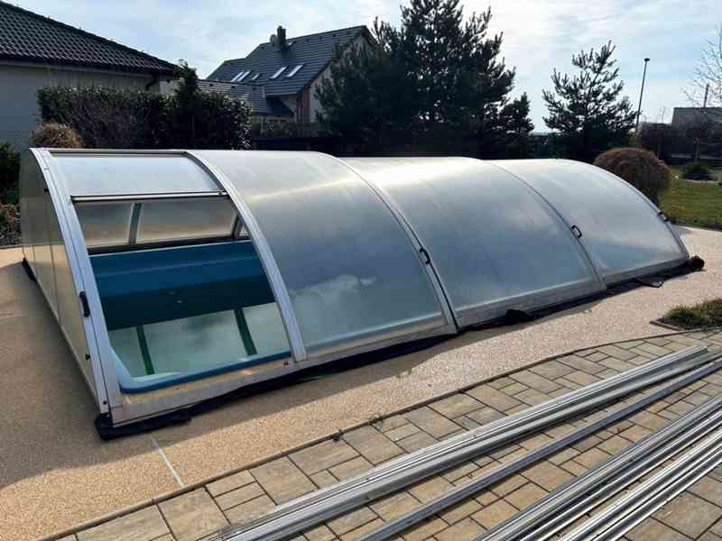 Prodám zachovalé a plně funkční segmentové zastřešení bazénu. Zastřešení výrazně prodlužuje koupací sezónu, udržuje vodu teplou, čistou a zvyšuje bezpečnost pro děti či domácí mazlíčky.