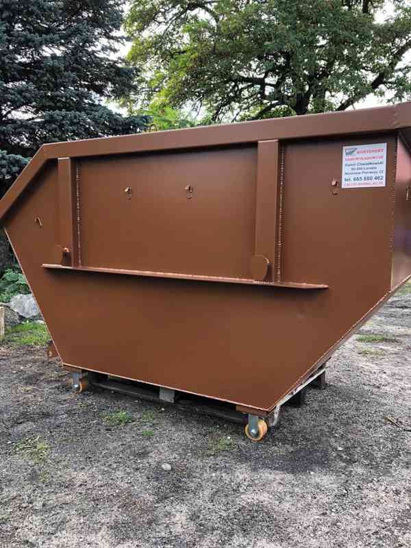 Witam, sprzedam kontener asymetryczny typu MULDA o kubaturze 3 m3. Wykonany jest w całości z blachy o grubości 3 mm, wzmocnionej prętami w kształcie litery U o wymiarach 70x50x3. Jest malowany podkładem i ostatnią warstwą. Posiada jeden uchwyt do przechylania oraz 4 uchwyty do dźwigu przeładunkowego.