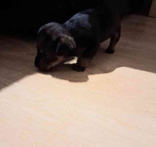 Dobrý den prodám štěňátko kluka křížení jezevčík s trpasličí pinč říkáme mu Bene ale nový pániček si ho může přejmenovat narodil se 28.10.2025 sám už chodí ale je to spíše ještě miminečko učíme ho pomalu na stravu pro více informací pište na whatsapp při rychlém jednání sleva jistá nechám za 5tis