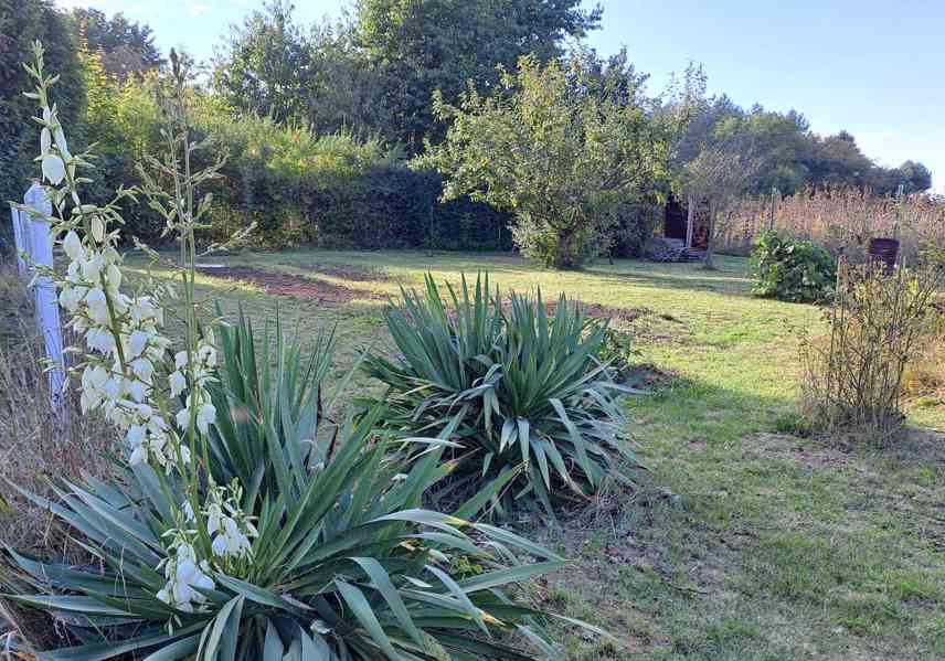 Ovocné dřeviny: višeň, bluma, mladá jabloň, ostružina, vinná réva