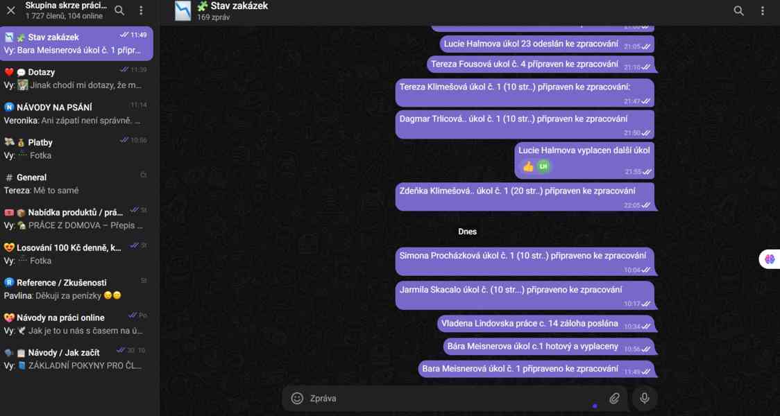 Práce probíhá prostřednictvím odkazu, který od nás obdržíš.