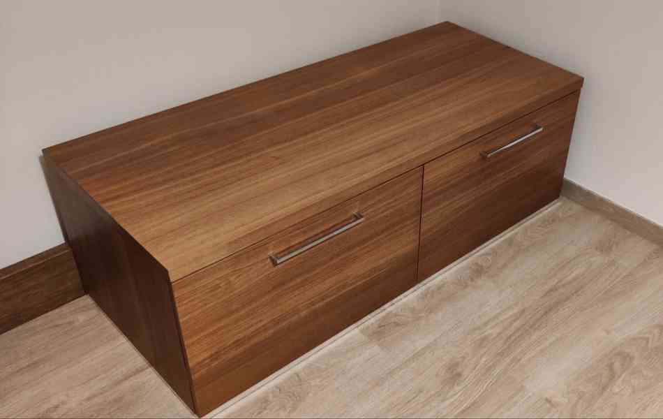 2× spodní TV skříňka (1× se zásuvkou, 1× s prosklenými policemi - na fotkách jsou umístěny skřínky na sobě)