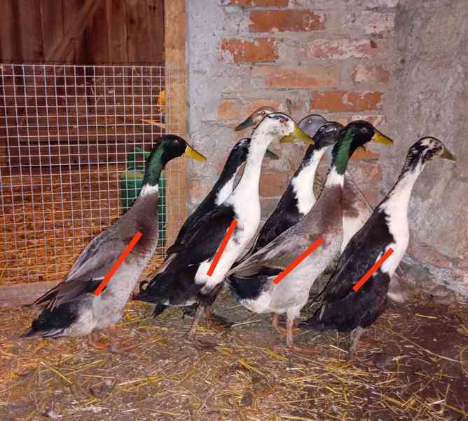 Prodám 3 kačery a 1 kachnu. Líhnutí letos v červenci. Kačeři po 150 kč za kus, kachna 250 kč. Na fotce zleva 3 kačeři, vpravo kachna.