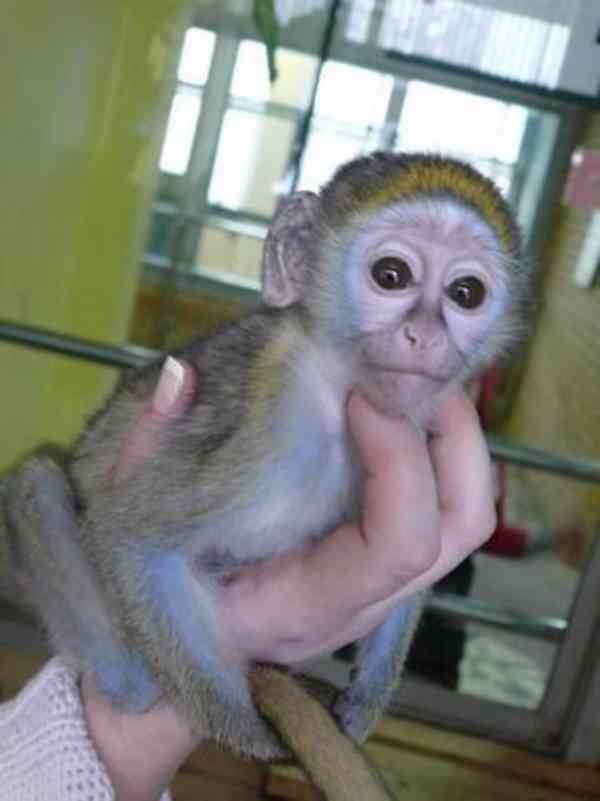 Naše opice jsou naučené na plenky, krmené na nočník a z lahve, mají velmi vřelou povahu a jsou dobrými kamarády na hraní pro děti i dospělé. Přivezou je se všemi veterinárními záznamy, zárukou na zdraví, hračkami na hraní a příručkou s vysvětlením jejich typu stravy a péče. (juanlarrel22@gmail.com)