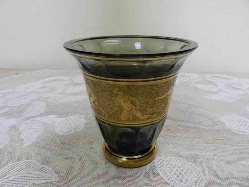Luxusní váza s oroplastikou, kouřové sklo, značeno zespodu Moser, 1 pol. 20 stol.