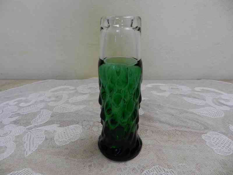 Zelená Váza z hutně tvarovaného skla - ladislav Paleček, Škrdlovice, 1976.