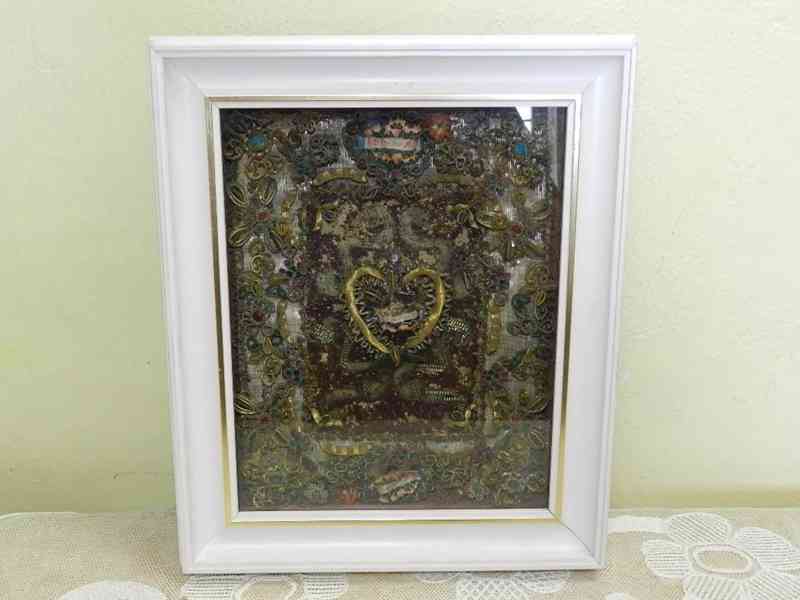 Krásný velmi starý Relikviář v novějším rámu, pěkný stav.