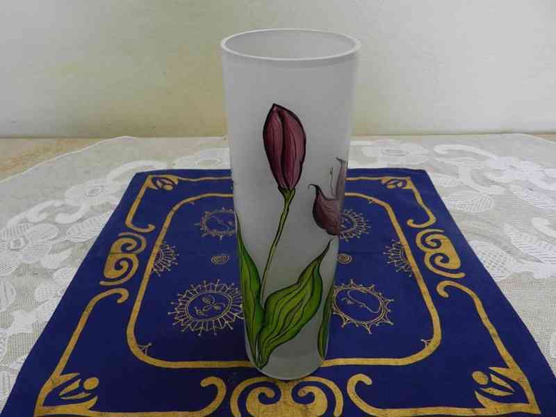 Hezká ručně malovaná Autorská Váza, matované sklo, Signováno ve spodní části, 20 stol.