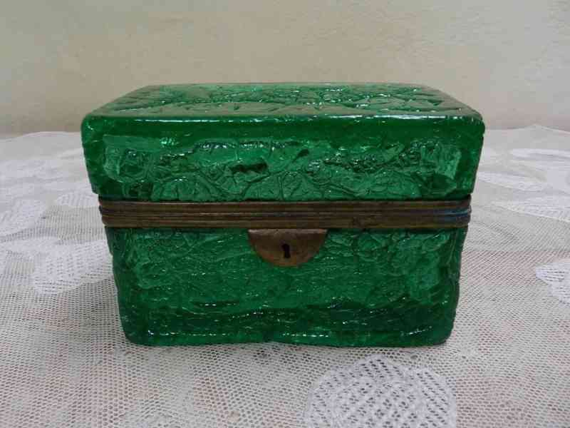 Krásná masivní Dóza s pantem, Biedermeier, reliéfní tmavší syté uranové sklo - kolem 1850, Harrachov.