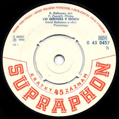 Prodám SP - Flamengo – Co skrýváš v očích / Zavraždil jsem lásku (Supraphon – 0 43 0457, Vinyl, 7", 45 RPM, Mono, Czechoslovakia, Beat, Psychedelic Rock). První vydání z roku 1968 ve velmi dobrém stavu. Universální obal. Zaslání poštou + poštovné nebo převzetí v Praze. Na dobírku nezasílám
