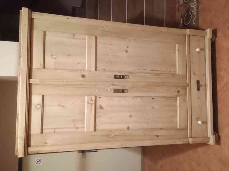 stará smrkovka po komplet renovaci, louhovaná, broušená, bez povrchové úpravy, po dohodě možno olejem Adler Legno nebo voskem, cena + cca 10%, šuple ,police, ramínková tyč, věšáky, šuple i dveře zamykatelné, rozměry: v - 173 cm, š - 107 cm, hl - 51 cm, vhodná na chalupu nebo starý penzion, pro info volat 603210073