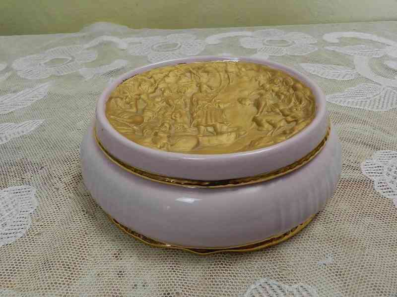 Zajímavá Art Deco Dóza, provedení Ivory, bohaté zlacení - Horní Slavkov, jubilejní značka 1932.