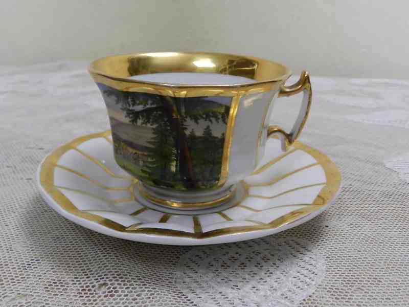 Krásný ručně malovaný zlacený Hrnek s podšálkem - Berlín, 19 stol.