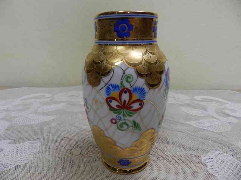 Krásná ručně malovaná porcelánová Váza, bohaté zlacení, Top Stav - Stará Role, malírna Telč.