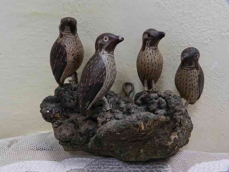 Vyřezávaní ptáci v hnízdě, původní nálezový stav, nečištěno, 19/20 stol.