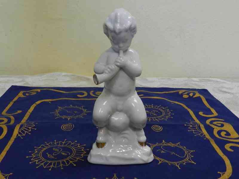 Krásná bílá zlacená porcelánová plastika, Faun - Fraureuth Kunstabteilung Německo, kolem 1920.