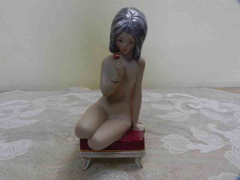 Krásná porcelánová plastika, Sedící Dívka - Royal Dux Atelier, Signováno, kolem 70 let 20 stol.