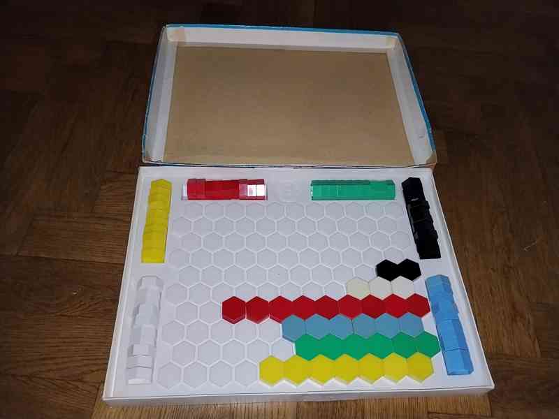 Nabízím zachovalou kompletní retro hru BEE-OLYMPIC MOZAIKA, Kovozávody Semily s náhradními kostičkami.
