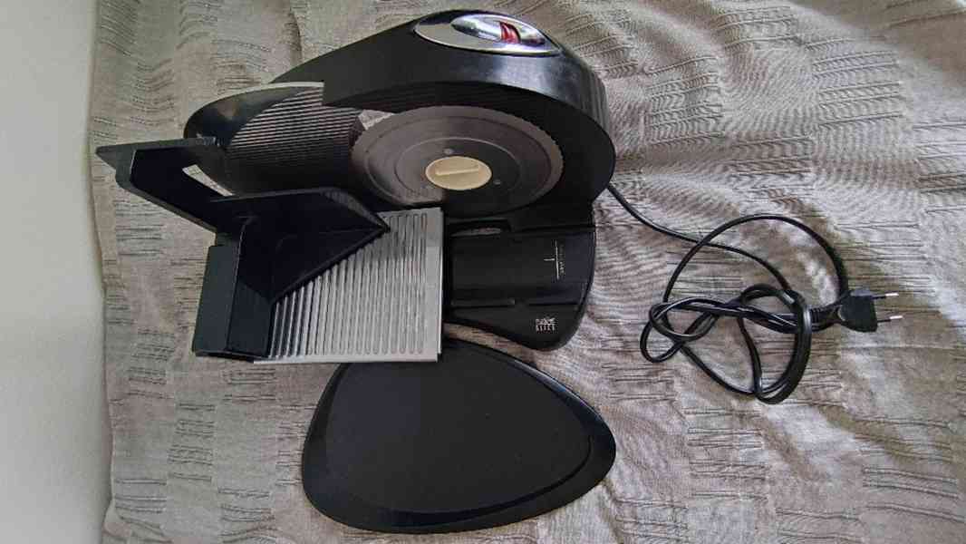 Kráječ Zelmer, typ Alexis, elektrický, zánovní, použit párkrát, ale už jen leží v komoře... Kráječ potravin • 200 W • nastavitelná šířka řezu • čepel z nerezové oceli • hladce nakrájí na požadovanou tloušťku jakékoliv uzeniny, sýry, zeleninu. Rozměry u fotografií. Požadovanou tloušťka se dá měnit kolečkem na zadní straně kráječe. Vysoce kvalitní nerez prodlužuje čepeli životnost a dodává jí ostrost. Díky rozebíratelným komponentům se dobře čistí. Vybaven protiskluzovými nožičkami, které drží přístroj na pracovní desce. Veškeré komponenty jsou vyrobeny ze zdravotně nezávadných a odolných plastů bez BPA.