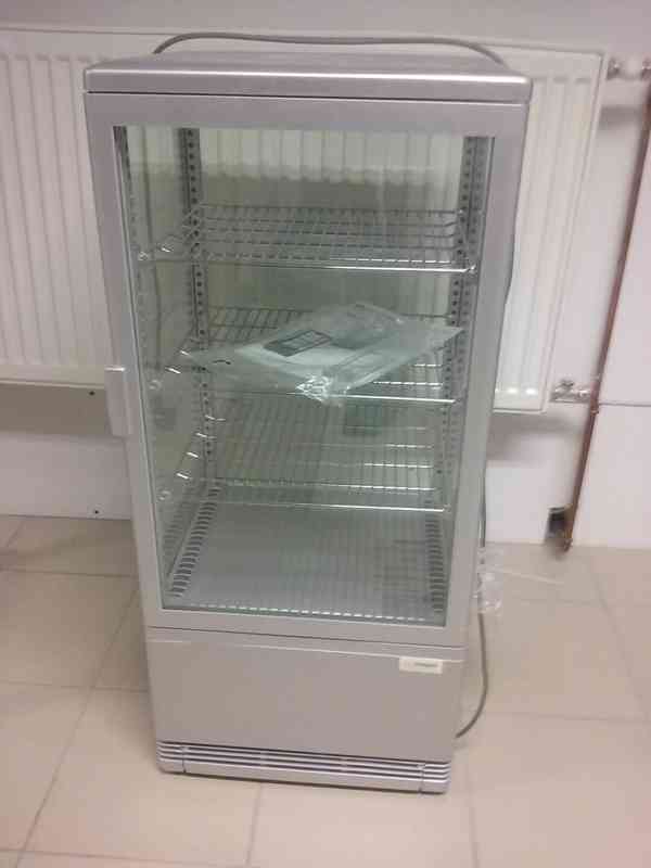 Universální vitrína EKO obsah 78 litrů, barva stříbrná, prosklená ze 4 stran, 3 police + dno. Rozměr ŠxHxV: 428 x 386 x 960 mm, teplota: +2°C až +10°C, výkon 160 W / 230 V, manuální termostat, neonové osvětlení (LED osvětlení na vyžádání). Cirkulační chlazení, dvojité sklo, vhodné na dorty, zákusky, lahůdky, restaurace, cukrárna, bar, hotel, pension atd.. Barevné provedení – bílá, černá, stříbrná, možno barevné a designové provedení folie (za příplatek). Cena: 11.990,- Kč vč. DPH + doprava. (kód: S852172)