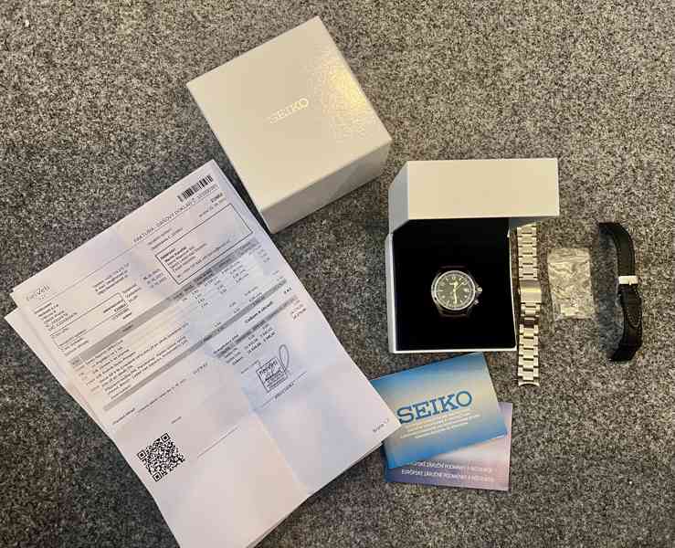 prodám hodinky Seiko Alpinist. Hodinky prodám s originálním hnědým řemínkem, originálním ocelovým tahem a černým koženým řemínkem WatchGecko. Řemínky/tahy jsou v dobrém stavu, ale byly nošené a tak na nich pár drobných známek nošení najdete. Hodinky samotné jsou v dobrém stavu. Vykazují známky běžného nošení, ale žádné velké/výrazné šrámy na nich nenajdete. Hodinky prošly v minulém týdnu prohlídkou v Helveti, kde jim byl v rámci záruky opravený strojek a provedena tlaková zkouška. Hodinky tedy šlapou bezchybně. V záruce jsou ještě do září tohoto roku.