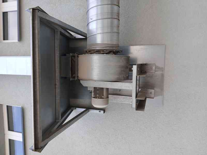 Radiální nízkotlakový ventilátor RNS 315, málo používaný, rok výroby 2017, výrobce Kovodružstvo Strážov. Část potrubí k tomu.