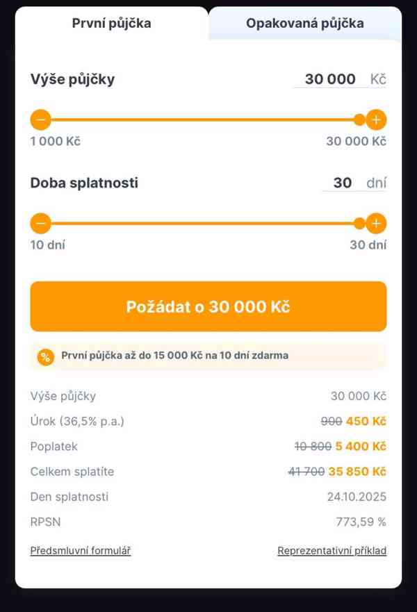 Splátky si určíte dle Vašich potřeb a délku splácení si můžete nastavit klidně na 10 let. Pokud budete chtít úvěr předčasně doplatit, můžete samozřejmě kdykoliv.